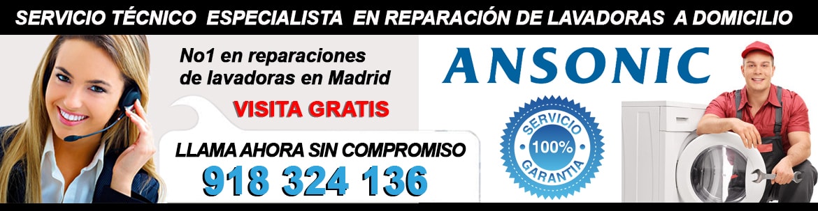 La lavadora es unos de los electrodomésticos que más utilizamos en el hogar, en ocasiones a diario dependiendo de los que seamos en casa. Sabemos que es un verdadero fastidio que se averíe y los problemas que puede acarrear. Es por ello que en más del 90% de los casos, acudimos a atender la reparación en el mismo día de la llamada. ¡Infórmate sin compromiso! Para la reparación de lavadoras Ansonic en Madrid a domicilio tenemos la solución, llama ahora y dispondrás de un técnico en menos de tres horas y sin coste por urgencia. ( Solo en el caso de que haya un técnico disponible en el momento, el 90% de las veces podemos acudir en menos de tres horas )
